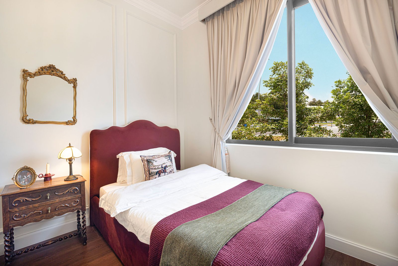 Le Petit Palace by The Authors is opulence curated within a townhouse on Al Athari Street. This Renaissance-inspired Chapter transports you to centuries bygone. A family or group of friends of up to 10 guests can enjoy European intricacies such as emboldened frames, velveteen headboards, crystal chandeliers, and art pieces including sculptures and curated frames.