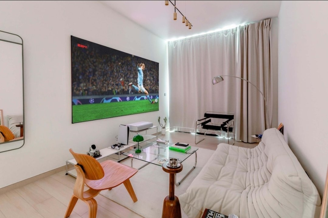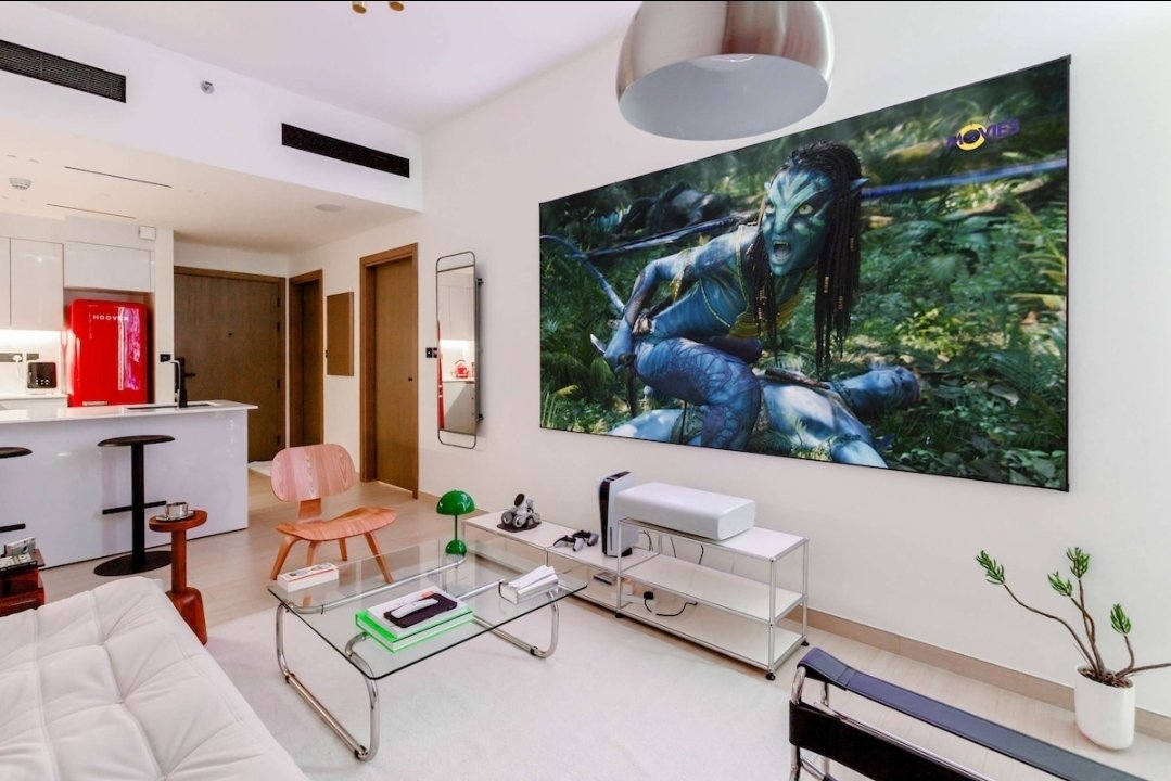 This whimsical Chapter in Jumeirah Village Circle greets guests with marvels like a 70’s Boombox, a RockBloc and our resident AI robot, Loona. The space is modern yet simplistic, ideal for two guests. A fully-equipped kitchen with glossy red retro appliances adds a plot twist of its own. For immersive evenings, the 120-inch screen with surround sound pulls you right into the action.